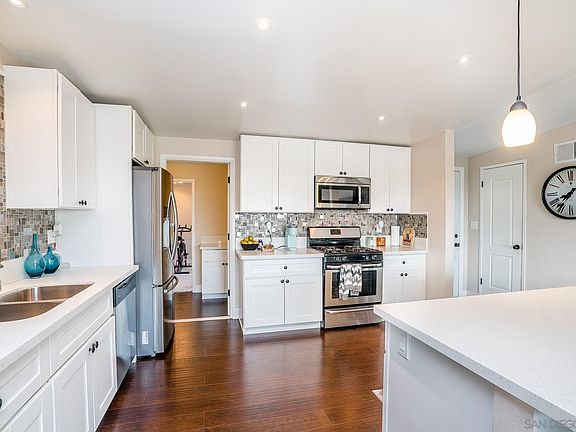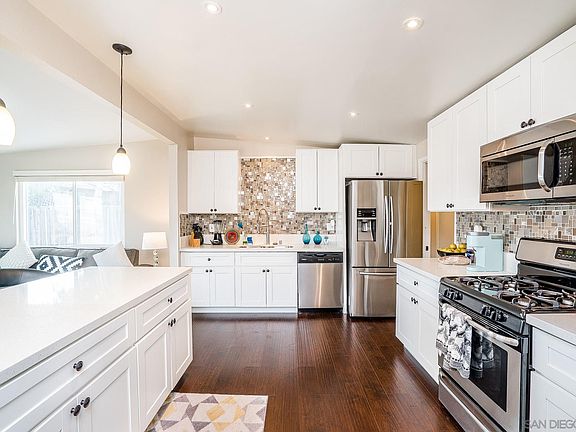Welcome to San Diego County's most affordable beach community! This home has four-bedroom, two-bath home is ready for move in. Espresso-colored floors, white quartz counter tops, bright white cabinets, bronze-finished accents, modern vanities, custom-tiled bath/shower, and warm hues throughout are inviting at every turn. A new roof was just installed! Located on a cul-de-sac, just a few minute drive from the Pacific Ocean, and with no neighbors to the back.