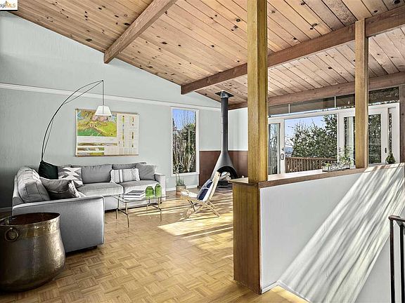 This home, in the Midcentury Modern tradition of 1960s Berkeley, has plenty of space to relax indoors and to explore nature outside, and comes fully loaded with original charm. The main living space has a wall of windows as well as clerestory windows. Two bedrooms downstairs share a bath. On the upper floor, there is one large bedroom, a large bathroom and a bedroom with a sliding door to the yard. In the evenings, sit at the dining area, or snuggle up to an original Malm fireplace to enjoy your cozy nest perched just high enough on the hill for spectacular SF, Bay and Golden Gate views. Close to U.C. Berkeley and Solano Ave and Gourmet Ghetto shopping, and five minutes to the Monterey Market, Berkeley Horticultural Nursery, and Freshly Cut Florist.