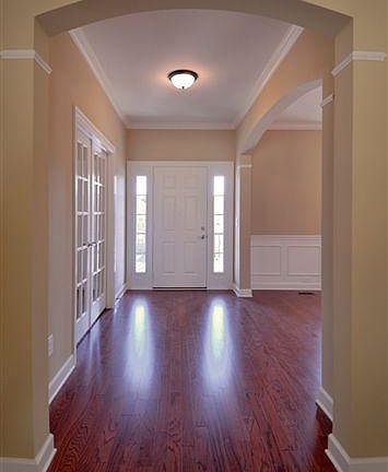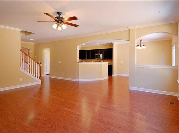 Everything you want in a new home...master suite downstairs, large open plan, granite countertops, open and light kitchen, hardwood foyer and powder room, tons of closet space, large secondary bedrooms, partially wooded back yard. Close to the pool.