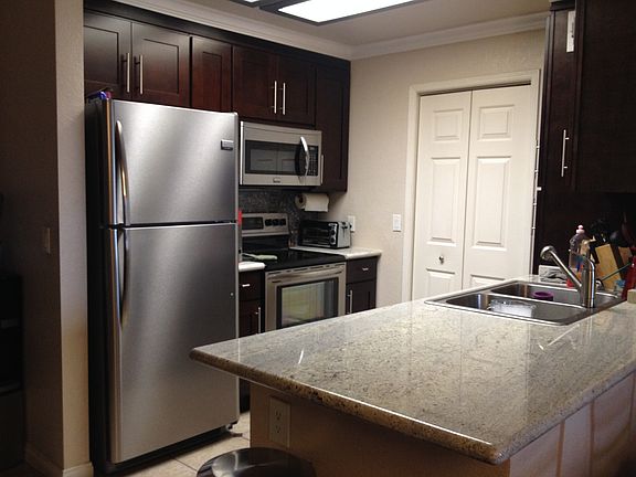 Two Large Bedrooms and new kitchen and two Balcony with no common wall any other unit. Grown floor with enclose Garage. Owner pay for HOA ($300+) which includes Water/Trash/GYM/Swimming pool and BBQ in the complex.