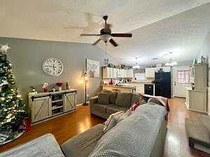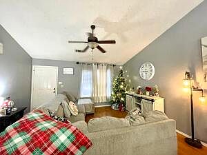 Split Level Floor Plan. 3 Bedroom, 2 bath home. Open floorplan with vaulted ceiling in the living, kitchen and dining area. The home features laminate flooring on the main level, attached garage, nice back deck and a large backyard. Utility and currently a 4th bedroom are set up in the basement.