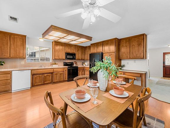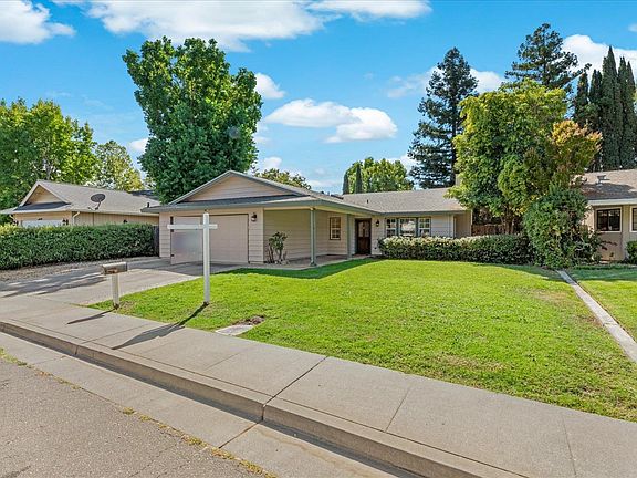 Welcome to this inviting single-story home in Dixon's desirable Watson Ranch neighborhood, ideally situated on a quiet court with small RV, trailer, or boat parking near freeways and parks. The home features fresh interior paint and carpeting, a spacious family room with a raised-hearth brick wood-burning fireplace, and a kitchen that opens to the dining area with a French door leading to the backyard. The kitchen offers generous counter space, laminate flooring, plentiful cabinetry, a dishwasher, range, and built-in desk. The large primary suite showcases double-door entry, a walk-in closet, and a bathroom with a stall shower and skylight. Generously sized bedrooms, a mudroom/drop zone off the garage, and abundant storage add convenience. The backyard highlights a covered fenced patio off the kitchen and dining area, additional patio space, fresh landscaping with new bark, two large side yards with ideal garden space, and a shed. The oversized garage includes cabinets, shelving, and a workbench. Located in an established neighborhood, this home blends comfort and functionality.