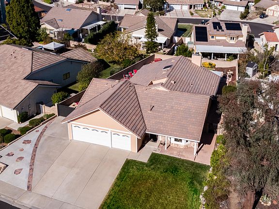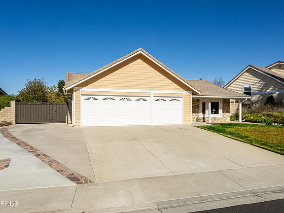 A must see! Beautifully remodeled three bedroom single story home, nestled in a quiet neighborhood of Newbury Park. Upon entering the home, you are greeted with a spacious sunken living room and dining room. Two additional windows were added in the living room to brighten both rooms. The original kitchen has been redesigned to include installed cabinets, granite counter tops, a large center island, Kitchen- Aid appliances, a double oven, gas range, a built-in refrigerator, and a walk-in pantry. Both remodeled bathrooms also have granite countertops and beautiful glass enclosures. The family room looks out onto the lovely patio with a view of the hills. There is a showpiece fireplace with a steel interior panel with a glass fire bed- every angle offers a new perspective! California Closets installed organizers in the closets and in the garage. An above ground Jacuzzi is outside the master and will remain with the home. All windows and sliding doors were replaced with vinyl, noise reducing windows. In 2017, the roof was replaced with new tile and the exterior of the house repainted. In 2018, the water heater and central heating unit was replaced, along with all duct work. Air conditioning was also added at that time. Tile and wood flooring are throughout the house. The spacious backyard includes a lighted vinyl patio cover added in 2018. The outside fountains stays with the house.