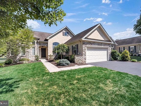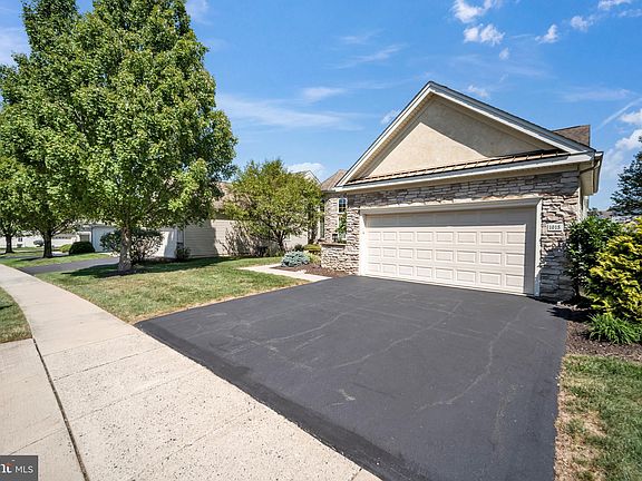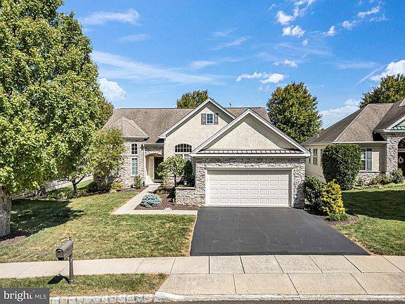 Welcome to this meticulously maintained 2/3 bedroom, 2 full bath single house in the premier 55+ Heritage Creek Estates community located in Warwick Township. This Washington model offers one floor living in a spacious ranch style home with an airy, light-filled, open floor plan. As you enter through the front door you are greeted with 12' ceilings, a formal dining room on your right and a large living room on your left. The spacious eat-in kitchen has natural maple wooden cabinets, ceramic floors, plenty of storage and counter space and adjacent breakfast area. Enjoy the large family room with plenty of natural light, glass sliding door which leads you out into a large, updated and maintenance free Trex deck and a gas fireplace providing a perfect space for entertaining family and friends. Next to the family room is the home office or 3rd bedroom with a ceiling fan/lighting fixture and large windows. This home has two large bedrooms both with ceiling/fan light fixtures. The primary bedroom has two walk-in closets and a plush own full bathroom with a stall shower, two separate vanities and a corner jacuzzi tub. There is a linen closet in the hallway as well as a coat closet. The main level laundry room includes a washer, dryer and utility sink and it leads out to the two car garage with automatic garage opener. The combination of maple wood flooring in high traffic areas, carpet in living areas and tiles in the kitchen gives this home a special charm. This home comes with a newer central high efficiency natural gas HVAC unit located in the basement, so you will have the highest quality air at the temperature you need, but you will never hear the noise of the ventilation unit. The full basement has a large finished area with dropped ceilings with spotlights which is perfect for entertainment. The unfinished area is organized as a spacious and comfortable storage space with custom shelving. The community clubhouse offers a fitness center, tennis courts, outdoor and indoor swimming pools, a library and billiards room. A scenic walking trail is located in the nearby adjacent Memorial Park. The Heritage Creek is a resort-like community which offers maintenance-free living with lawn maintenance, snow removal and trash removal with a convenient location near shopping centers, train station, and restaurants. This dream home offers the luxury and neighborhood you have been looking for!