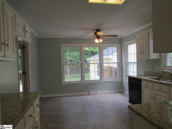 It doesn't get any better than this! 3 Bedroom, 2 bath home with detached 2 car garage and fenced backyard in the Powdersville School District. Great location with extras including: laminate wood flooring, moldings, vinyl windows, and architectural roof. Huge Great Room with Brick Fireplace. Formal Dining Room, Remodeled kitchen with new granite countertops and new vinyl flooring. 14x18 Master bedroom features a walk in closet and full remodeled bath with an over-sized tiled shower that was installed by bath fitters . Don't forget the rocking chair front porch and the back deck over looking the private, fenced backyard. Freshly painted and ready for the new owner!