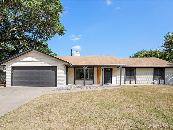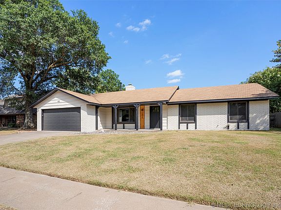Welcome to affordable luxury near South Lakes golf course in Jenks West School district. This 3 bedroom, 2 bath home backs to a greenbelt and has white oak hardwood floors throughout. Gold fixtures and hardware, on trend paint colors and tile, and granite counter tops make this fully remodeled home one of a kind. The dedicated dining area has flexible potential for an office. Additional space off the kitchen could be a 2nd living. The convenience of being 2 miles from Tulsa Hills, with a close proximity to Highway 75 and the Creek turnpike makes this home one that will not last.