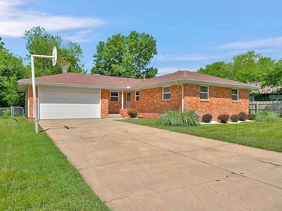 This adorable one-story ranch is the perfect West Wichita home. It is a 3-bedroom, 2 full bathrooms, 2 car garage home and is a gem, snuggled in Westlink Village 9th Addition. The charming kitchen is open to the dining room and connected to the living room to create a a very open concept. The living room has custom built bookshelves which surrounds a floor to ceiling wood burning brick fireplace and a hearth that spreads across the entire wall. This adds additional seating space. The master bedroom has its own private bathroom. The basement has a large family/tv room with a wet bar. The adjacent room is the perfect workout, craft, or child's playroom. The laundry room is spacious with storage space. The private backyard is fenced and landscaped with shrubs. This home is in the perfect location and priced to sell. Don't wait!