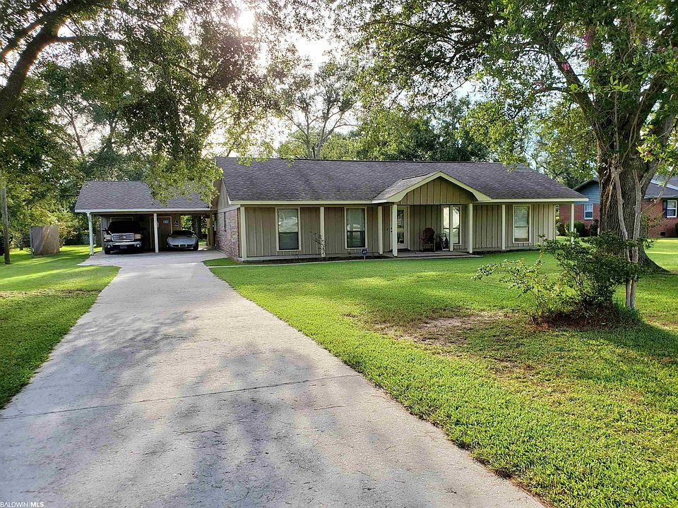 This Beautiful 3 bedroom 2 bath is a ranch home and is located in downtown Foley. It's just down the street from the middle school and quick bike ride to the city parks. Large Front and Back Yard!! New laminate flooring throughout the high traffic areas of the home and nice plush carpet in the bedrooms. There is a shaded front porch for your rocking chairs. You can greet your guests at the foyer before taking them to 1 of 3 living/entertaining spaces. One is formal, one with a wood burning stove, and the 3rd is a 17 x 17 room that has a beamed vaulted ceiling with windows overlooking the large backyard. There is an alcove that's perfect for a desk/office, homeschool location, or sewing/craft area. The kitchen is galley style and a large over-sized, walk-through laundry leads to the outside double carport and storage. *Sellers are frim on price.* Minutes to shopping centers and restaurants, and apx 10 minutes to Gulf Shores Beach. All information of importance and measurements shall be verified by buyer and/or buyer's agent.