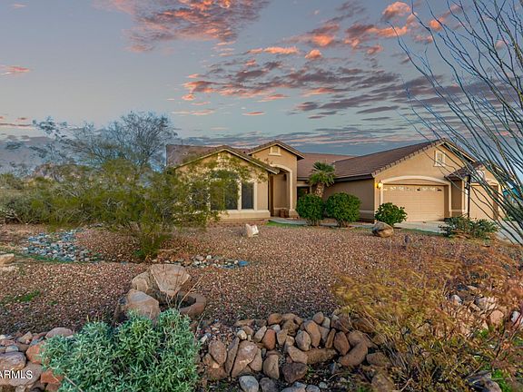 See documents tab for full list of upgrades! Enjoy owning this spectacular custom home with a 3-car garage with spectacular views of the Superstition Mountains! Discover an enchanting interior boasting wood-look tile flooring, vaulted ceilings, archways, and NEW shutters. Desirable great room has back patio access. Gorgeous kitchen comes with recessed lighting, ample cabinets with crown moulding, a pantry, built-in appliances, NEW granite counters, mosaic backsplash, and a waterfall island with a breakfast bar. Fall in love with the main suite showcasing plush carpet, bay windows, an elegant ensuite that was fully remodeled in 2021 with dual sinks, jetted tub, and a walk-in closet. You'll have a dedicated bonus room w/ attached cabinets that could easily be made into a 5th bedroom! Enjoy.. Enjoy stunning mountain view from the amazing backyard, including a covered patio, firepit, play area, and a refreshing diving pool with a rock waterfall. New A/C and NEW water heater! A truly must-see gem that you don't want to miss!