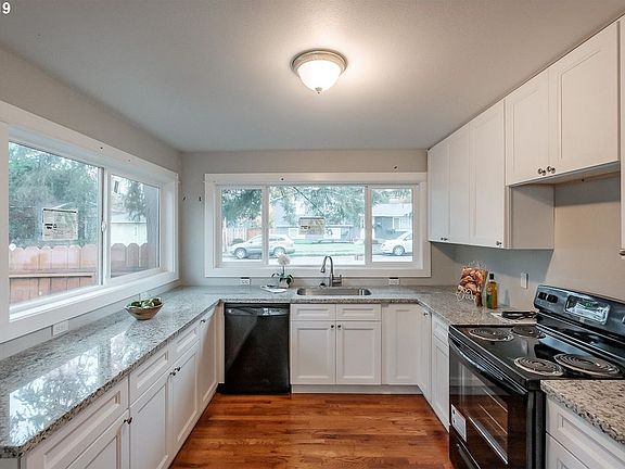 Beautiful updates! Large contemporary ranch home in NW Corvallis. Spacious main living room with wood burning fireplace, vaulted ceilings with exposed wood beams. New kitchen with grey shaker cabinets and granite countertops. New carpeting and flooring to accent original hardwoods. New paint throughout. New windows! Layout can work for possible additional living.