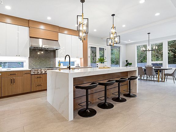 Custom designed & built by award-winning Timurland Construction this Northwest Modern home is filled with luxurious finishes, meticulous attention to detail & thoughtful amenities. Located in the Cedar Mill neighborhood of Portland's West Hills, this home was designed for gathering, with a chef's kitchen, sleek wet bar, covered patio, sauna, & main floor suite for guests. Beautiful bespoke designer finishes and features including custom lit mirrors and European artisan hand formed feature walls.