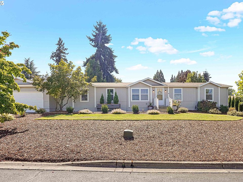 Don’t miss this turnkey, beautifully maintained, four-bedroom/two-bath home on a spacious double corner lot that backs up to a park. Updated ceiling lights and interior painting create a welcoming atmosphere. Enjoy the eat-in kitchen with Corian countertops and stainless steel appliances, including a new stove, microwave and garbage disposal. The vaulted dining, family and living rooms allow for a variety of activities. Experience the comforts of a primary bedroom with upgraded ensuite bathroom with double-sink vanity and extra LED lighting. The other three bedrooms are on the opposite side of the house with an updated hall bath. Recent exterior upgrades include a new roof, house painting and landscaping. Special exterior features include a covered patio, a Trex deck and lush arborvitae for privacy in the back and side yard. Roomy closets in the house, an over-sized 2-car garage with work bench that adjoins a mudroom/laundry room (with sink, washer and dryer) and TUFF storage shed supply ample storage options. This 1809 sq. ft. manufactured home was updated with a new HVAC system in 2022.