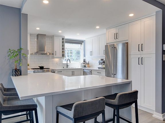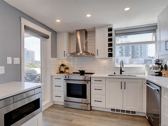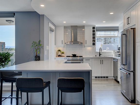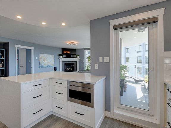 Welcome to the Pacific Monarch, a luxury 10 story steel and concrete building in amenity rich Downtown Victoria. With only 3 units per floor, secured underground parking, and 2 elevators, this offering puts emphasis on making life easier. This spacious 2 bed/2 bath suite has been completely renovated with beautiful finishings making it move in ready. Updates include new kitchen with high end appliances & quartz countertops, new bathrooms w/heated floors, light fixtures, electric window coverings, paint, flooring throughout, and much more. A sun drenched, SW facing wrap-around deck allows spectacular 180 degree views of the city and mountains. The open floor plan and abundance of large windows allows for plenty natural light to shine throughout every room, including large primary. Other features include gas fireplace, in suite laundry, common garden, rooftop deck, amenity room and large storage locker. This is a turn key home or investment steps to stores, cafes, and restaurants.