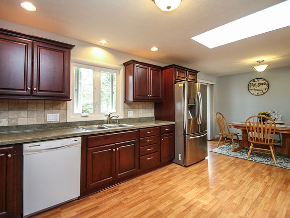 ITS A 10! Move right into this UPDATED 4 bedrm split with 2 full Baths & neutral decor! 2008 Kraft Maid KITCHEN CABINETS, COUNTERS, BACKSPLASH, SS APPLIANCE, LAMINATE FLRS. 2011 NEW TEAR OFF ROOF,GUTTERS & MOST WINDOWS, & ELECTRIC SERVICE TO 200 AMP. 2010 NEW FRONT PATIO.2014 HOT H2O TANK. 2015 BOTH BATHS, TOP TO BOTTOM RE-DONE. 2015 CONVERTED FIREPLACE TO GAS, NEW FURNACE. Other features large family rm, living/dining room (w/hardwd flrs), 1st flr bedrm w/full bath. Walkout bilco basement door, invisible fence, awning over deck, vinyl siding, shed & treed lot all this in Churchville Chili schools under $150,000, unheard of! Walking distance to Davis Park! View that virtual tour and call for that private showing! Easy to show!