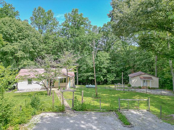 Well-loved and maintained home on a beautiful 6.8 acres at the end of cul-de-sac with year round creek. 44 minutes from Nashville. 2 Bed/ 1 bath (1000 SF) on main level + 2 Bed/ 1 Bath (1000 SF) partially finished basement + Detached 2 car garage (roof 2 years old) with additional 480 SF which could be converted to living space. Heated floor systems in kitchen, hall and bath. New windows 2 years old, roof 10 years old, HVAC 5 years old regularly serviced, HWH 5 years old, pex plumbing 9 years old, gutters & facia 2 years, electrical 7 years old, kitchen appliances 6-10 years old, termite inspection 3/3/2023, covered RV port. Fenced in front yard. Fruit trees & grapevine. Selling as is…