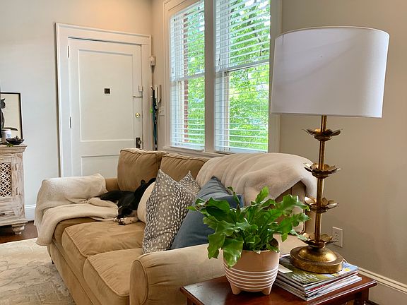 Beautiful and Charming 2 bed, 1 bath apartment in heart of Midtown Atlanta Live in the heart of Midtown, a block from Piedmont Park and walking distance from countless restaurants, bars, museums, the BeltLine, and more. The Midtown Marta Station, Colony Square, the High Museum of Art, the Atlanta Botanical Garden, and three grocery stores (Whole Foods, Trader Joe's and Publix) are all less than a mile away. This historic apartment building is over 100 years old, and boasts beautiful hardwood floors, high ceilings, and lots of charm. This top-floor unit includes 2 bedrooms, a spacious eat-in kitchen, living room with built-in shelves, an updated bathroom, and a large laundry room with lots of storage. The rooms are large, with lots of natural light coming through the many windows. There's a balcony overlooking the charming courtyard, shaded by several trees. Utilities: Water and trash included. Google Fiber internet available. Includes one reserved parking spot in lot behind the building Water and trash is included. Google fiber is available in the building. Building is 100% smoke-free inside and outside. Refundable security deposit (1 month's rent) and non-refundable pet fee ($100) due at signing. 1- and 2-year lease available. Landlord is local.