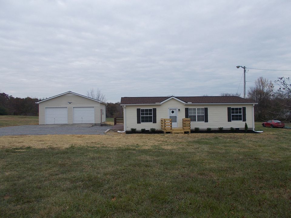 New Roof. Home has been freshly painted. Large deck (partially covered) out back overlooking 1.5+/- level acres. 28x26 detached garage with electricity.