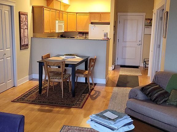 AVAILABLE: Nov 9, 2025 Fully furnished Condo. Minimum 1 month lease (1-4 months are ideal), possible up to one year. Rent includes utilities and WiFi. If you respond please DO NOT just use the response buttons, "Tour" button. You must answer my "standard questions" also posted in "Lease Terms" to start a conversation. Tours may be made available on a limited basis after reviewing answers to my standard questions. Step one if you are interested: My standard questions: - # of people and relationship (friend, family, colleague, crew, acquaintance, other) - # of vehicles - Pets: age, breed, and size - any smokers in the group? - boats, RVs, motorcycles, bicycles, etc. ? - employer - dates desired - Reason looking - Special requests/requirements Please answer thesse to proceed. I try to ensure a good fit for me, the neighbors, the building, and you. This is NOT a property management company. NOTE: We only provide occasional in-person tours/showings and only after reviewing the posted "standard questions" and if the condo is vacant. Excellent central downtown Bellingham location. This is a fully FURNISHED water view condo (island views). Fully FURNISHED in a prime location with access to all the best of Bellingham. Condo is 2 bdrm/2 bath, 956 sq ft, 9' ceilings, W/D in unit, wood floors in LR, smart TV (no cable TV channels), granite counters, electric decorative fireplace (no heat), deck overlooking Bellingham Bay. Includes one secure parking space, secure bicycle room by request, utilities, and WiFi. The master bedroom has a queen Murphy bed with memory foam mattress. The second bedroom is furnished as an office space. There are 2 Elevators in the building. This Morse Sq. Condo is across the street from Farmer's Market and Boundary Bay on the water side of the building. What more could you want? One pet possible after discussion and with pre-approval and $50 pet fee. The condo overlooks the train tracks and the new waterfront development. YES, You will Hear the Train. The trade-off is the view, the water, the sunsets, and "romantic" train. Lease 1-4 month lease, up to one year. One month, 30 day minimum (HOA rules). Deposit required. Cleaning fee = $145 Pet fee = $50 Condo move-in fee - $100 If interested here are my standard questions (please answer them, that is step one) : - Dates desired - # people - Relationship to each other - # Vehicles - Any smokers? - Employment - Pets? - age, size, breed - Any motorcycles, scooters, boats, RV's, second vehicle, bicycles, etc - Reason for seeking rental - Any special needs or requests: AVAILABLE: November 9, 2025 Flexible lease term - 1-4 months is ideal. Up to ONE YEAR lease is possible. Deposit may vary with length of stay. Cleaning fee= $145 Pet fee = $50 Text is OK. Do NOT call. Phone call will not be answered. To respond please DO NOT just use the Zillow response buttons. Please DO NOT just select the "Tour" button. Please answer my "standard questions" posted below to start a conversation. Tours may be made available on a limited basis after reviewing the answers to my "standard questions", and if the condo is vacant. This is NOT a property management company and we do our own screening. NOTE: NO SMOKING! Pet only with prior approval and $50 pet fee. No puppies. No vehicle leaking oil. Able and willing to follow HOA rules. Max 2 people. Employed. Good credit. Payment good when made. Good references. The rental is for you. No persons other than those on the rental agreement to stay overnight. Answered my posted "standard questions". I always try to do my due diligence to ensure a good fit for you, the condo, and the neighbors. My standard questions: - # of people - Relationship to each other - # of vehicles - Pets: age, breed, and size - any smokers? - boats, RVs, motorcycles? - employer - (only needed if staying more than a month) - dates desired - Reason looking - Any special needs or requests