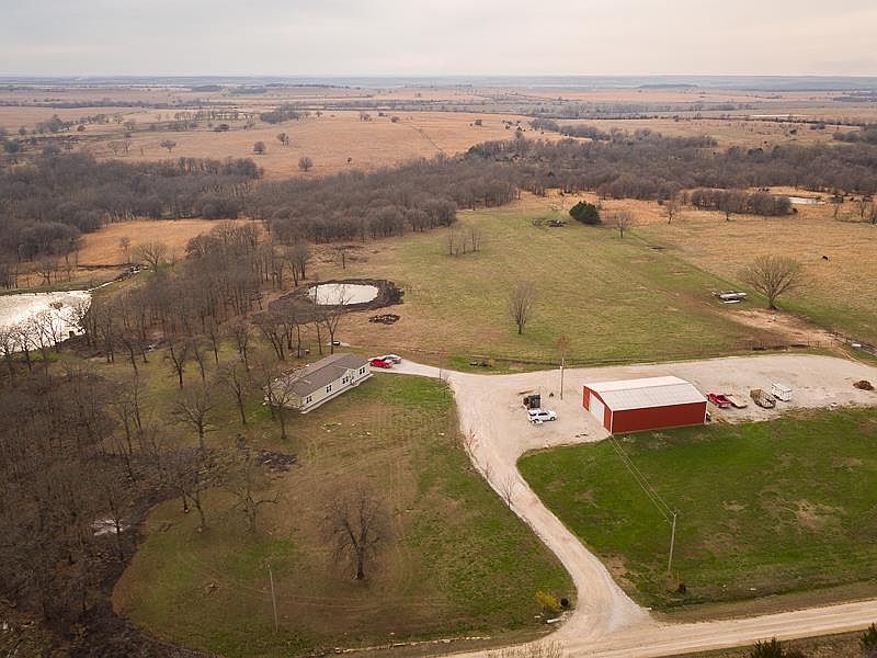 If you're looking for your piece of land where it's quiet, has a 4Bed/ 2Bath Home (2,232 sq ft), 40x60 shop with Radiant Heat, Pond, Creek, Livestock area, and away from the hustle and bustle look no further, we have found it! This Home sits on 40 acres and has the ability to be 60 acres if you desire additional acreage. Nestled off the of the county road the view pulling in is open to the sky with mature oaks running through the property. The home features a formal living room and family room. The Master is a split bedroom design with attached full bath. The sliding glass doors by the dining room table over look the pond located directly behind the home. The shop provides plenty of room to work, with office area, bathroom, and storage. One of the best parts about the shop is the radiant heat that was installed through the floors of the shop. The remaining acreage to the west of the home provides opportunities for livestock. A rock bottom creek runs through the middle of the 40 acres.