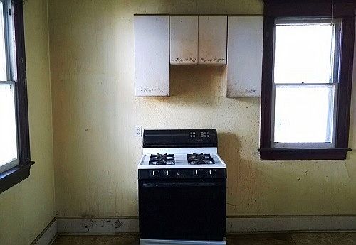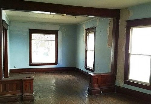 Two-story duplex. Identical units; covered front porch; living and dining rooms; three bedrooms and one bath per unit; a lot of natural woodwork and some hardwood floors. Laundry hook-ups in the full basement. Equal Housing Opportunity