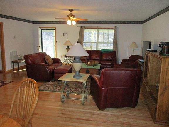 Pristine mountain home with open floor plan accented by select hardwood flooring, large covered front porch and a creek fed clear water pond just beyond the covered back porch for a refreshing dip in Rocky Branch Creek. New well and pump, new water conditioner, whole house automatic 5KWG backup propane generator. New propane gas furnace, new a/c, and new sound system. Perfect for your mountain valley get away.