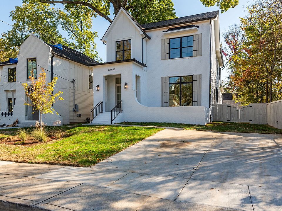 New luxury SFH w/ a DADU, fenced yard and walkable to Cleveland and McFerrin Park’s dining & shopping, Dickerson Pike and under a 5 min drive to 5 Points and RiverNorth (Nashville’s 2nd downtown)! The home greets you w/ an awe inspiring 31' wide front porch w/ double transom doors under the canopy of a beautiful oak tree. Inside features an open concept with soaring 12' ceilings, hardwoods and a micro-cement gas fireplace. Each room has XL windows flooding the home w/ natural light and lovely views of the courtyard. The kitchen boasts a corbel arch entryway, gas range, island, storage and glass doors leading to the serene checker-tile courtyard. Beyond the kitchen is an office and the master suite. The master features a 2nd gas fireplace, accent wall, enormous closet, soaking tub & pebble shower. Upstairs is a large bonus room and 3 guest rooms, all w/ walk-in closets & full baths. The fenced back and side yard provide space for pets & play. Past the yard is a true 1 BD DADU featuring a kitchen, dining space, fireplace, full bath, laundry hookups and vaulted ceiling. This home may qualify for OO-STR! A garport will be added off the alley, providing 3 parking spots in addition to street parking. DADU is an original structure but has been completely renovated. Main home = 4 bd, 4.5 ba & 3,086 sq ft; DADU = 595 sq ft. Photos of yard & DADU not yet taken.