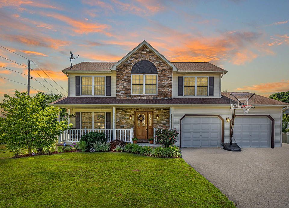 Check out this stunning home situated in the beautiful Horizon Estates. A striking landscape that leads to an eye catching stone front home. Featuring 3 beds and 3 baths, 2nd floor laundry, master suite with walk-in closet and a jetted tub. Outside features a large fenced in yard with an oversized deck, and temperature controlled in-ground swimming pool. Large driveway leading to a 2 bay garage.