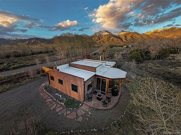 Embrace the extraordinary in this remodeled sanctuary, tucked away on 3.2 acres amidst tall cottonwoods on lwr Spanish Creek drainage. One of the prettiest properties in the Grants, this exceptional 2BD/1BA retreat combines thoughtful design, luxury finish & idyllic setting, epitomizing the best of Crestone living: beauty, tranquility & nature. Economize w/ well & septic: lower taxes & no water bills. Bordering on huge greenbelt to the south & surrounded by larger developed parcels, enjoy exceptional privacy now & in the future. Impeccably upgraded, the SW-style home features: high ceilings, exposed beams & custom floors; designer kitchen w/ warm wood cabinets, elegant granite counters & quality appliances to inspire your culinary creativity; comfy living room w/ high ceiling, wood stove & custom stone hearth; bright sunroom w/ hand-painted mural, 170sf of light-filled, inspirational living space, w/ easy access to the terrace, for al fresco dining; bathroom oasis w/ granite finishes, abundant storage, rain shower & indulgent soaking tub—your private spa; extensive mechanical upgrades, including new H2O heater, boiler & plumbing for cozy & efficient radiant in-floor heat; new well pump & HRV installation (2019), ensuring modern efficiency & comfort; complete exterior refresh w/ new roof, windows, & stucco. The 1106sf open-concept living space is airy, bathed in light, w/ views into nature on all sides. Both bedrooms offer spacious, peaceful refuge, w/ magnificent views. Outdoor living is equally exceptional, w/ flagstone terrace, large fenced garden, gravel walkways & idyllic treed setting offering abundant habitat for wildlife. Lovingly-maintained, turnkey opportunity w/ furnishings negotiable; move-in ready or continue as high-performing vacation rental w/ 160+ 5-star reviews. Come experience the magic of Crestone, where your mountain sanctuary awaits. Reconnect w/ nature & enrich your spirit. Call today to schedule your tour; one visit is all it will take!