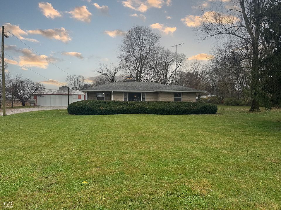 Charming Bedford stone ranch on over 2 acres-right across from Southside Elementary School and the fairgrounds! This warm and inviting 3-bedroom, 1-bath home features hardwood floors throughout, a bright main level, and a full unfinished basement perfect for storage, hobbies, or future finishing. Enjoy the convenience of an attached 2-car garage, plus a massive 30x48 heated and insulated pole barn with concrete floors and 240-volt power-ideal for welding, woodworking, auto work, or year-round projects. The large property provides space, privacy, and room to grow, all while being close to schools, parks, and local events. Homes with this combination of charm, land, and functional workspace are rare-don't miss it!
