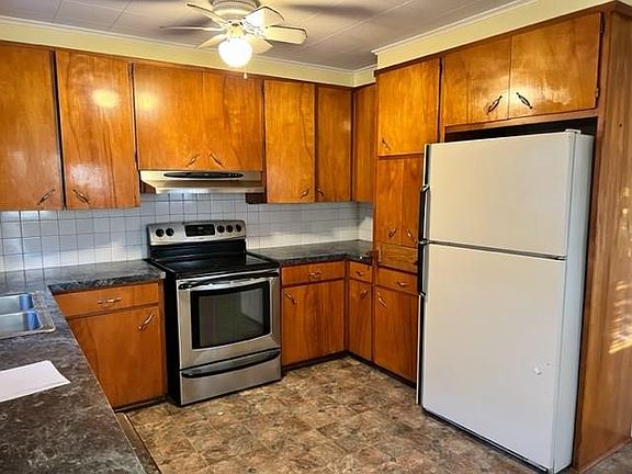 Nice curb appeal on this cute 2 bedroom. Covered concrete porch. Large living room as you enter the home. Dining room with patio door to raised deck and privacy fenced yard. Additional yard space on the other side of privacy fence gives you additional parking from alley or pet run. Kitchen has nice cabinets and counter tops. Appliances will stay however not sure if dishwasher works and appliances will be sold as is. Home has been used as a rental and owner is ready to get out to rentals. Repairs are need as you will see in the photos. We believe is showings what needs repaired so check out photos. House won't qualify for USDA,VA or FHA loans. Carpet is being pulled up in living room and bedrooms exposing the hardwood floors. Spacious bath that was remodeled since house was built (see photos of descriptions). Close to hospital and walking distance to Jr./Sr. High School. Central heat and air. Some newer and some older windows. Real estate taxes are based on a county value of $56,200.00
