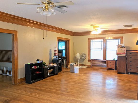 That "WOW" factor when you walk in with the high ceilings, wide baseboards/crown molding, and hard wood flooring in this old world charmer on 2 LOTS. 2 bedrooms downstairs with a full bath, 2 bedrooms upstairs with a half bath. The front porch is a wonderful setting for rocking chairs to watch the cars pass by. Brand new central heat and air units in the main house. This property does have the potential for rental income with a garage apartment that is in need of repair. Being sold AS IS.