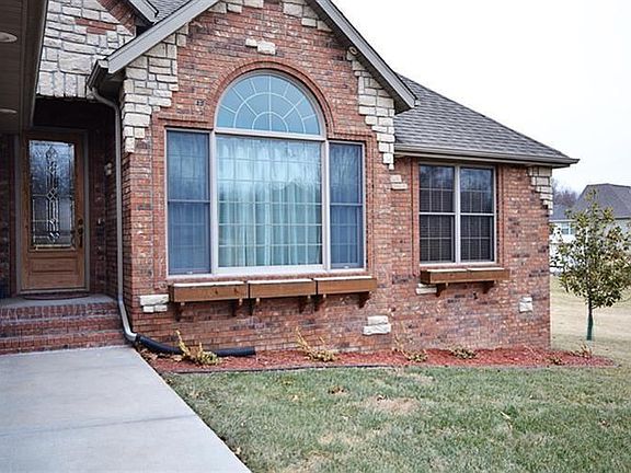 1015 W Cory St, Ozark, MO 65721. ALL BRICK FINISHED WALKOUT with newly installed granite counter tops to enhance beauty! Situated on nearly an acre of land overlooking a pond in McGuffey Park, this lovely home is still within walking distance of Ozark schools. Located on a cul-de-sac with great curb appeal, the house has a 3 car garage and a huge John Deere room. Enter to the beautiful formal dining room, hardwood floors, fireplace, new upstairs carpet; and large kitchen with terrific cabinet storage, a breakfast bar and additional family dining. The private Master suite is split from the other bedrooms and has a spacious walk-in closet with plant shelves, walk-in shower and corner jetted tub. Large windows beckon for a view of the covered deck, or step out the door to enjoy the wooded bac