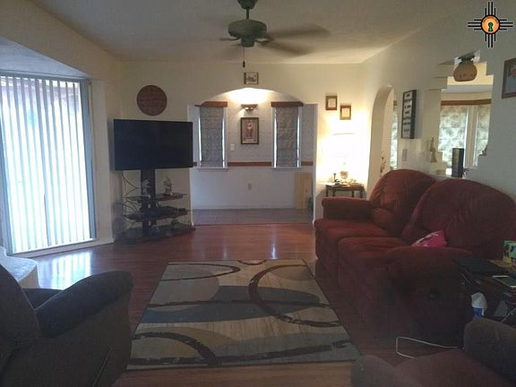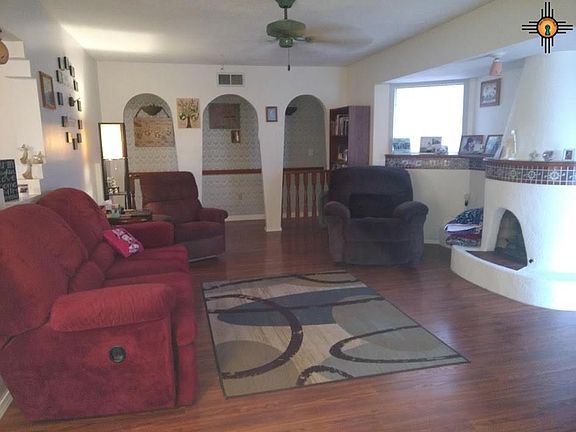 This large 5 bedroom 3 1/2 bath home is 2,373 sq. ft. The living room and master bedroom each have a nice gas kiva fireplace. The master bedroom has a nice walk-in closet that has built in cabinets and drawers. The second bedroom has a sitting room/sewing room with built in ironing board. Lots of room to have a beautiful home. Single car garage, 2 separate single car carports, workshop with garage door. The home has a security system in unknown condition current owners have never activated it. Home is being sold in As Is condition.