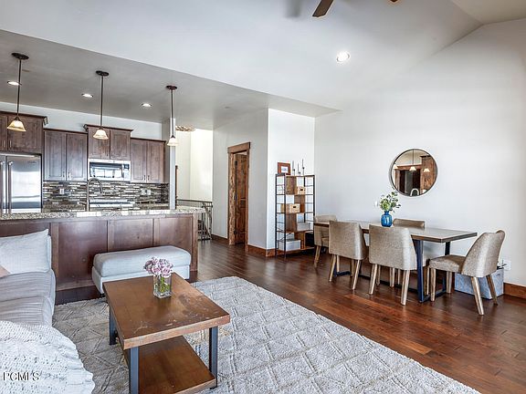 Black Rock Ridge townhome with expansive views of the Wasatch Mountains and Park City ski resorts. This charming townhome offers a spacious and functional floor plan with the primary suite on the main level as well as the kitchen and living area with granite countertops, stainless steel appliances, and a powder room. The living area provides enough space to accommodate a dining table as well as an inviting stone surround fireplace with deck access to watch the stunning sunsets year round. The lower level includes 2 bedrooms, a full bathroom, as well as an additional living area with walkout access to a patio. Features include Knotty Alder cabinets, Hansgrohe plumbing fixtures, hardwood floors, an attached two-car garage, a pantry, and vaulted ceilings with 9-foot doors throughout. Black Rock Ridge is centrally located, just 45 minutes from Salt Lake City International Airport and within minutes of Historic Main Street in Park City as well as the Jordanelle Reservoir and the Uinta-Wasatch National Forest for endless recreation opportunities.