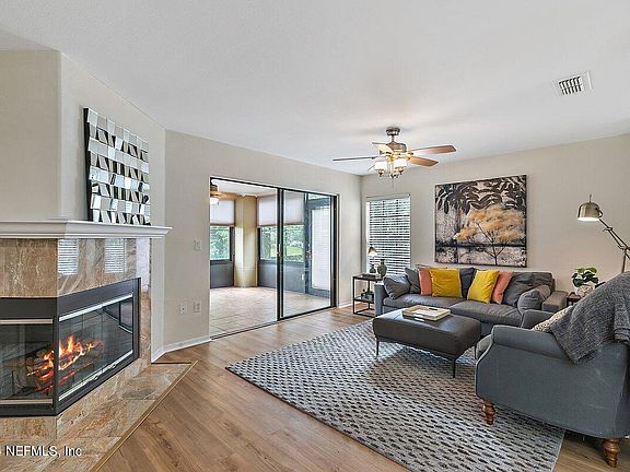 Welcome to this charming two bedroom, two bathroom condo nestled in a serene neighborhood. Newly updated kitchen and baths make this home move in ready. New vinyl flooring throughout for easy maintenance. Step into the inviting glass enclosed patio, views of the trees and open space will be a perfect place to enjoy your morning coffee. The attached garage provides convenient parking and additional storage space. Two pools and a gym are a short walk away. Community has R/V and boat parking for your convenience.Restaurants, shopping, St Johns Center and access to I95 are all minutes away. You won't want to miss the opportunity to call this home.