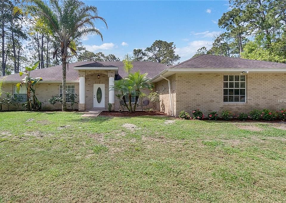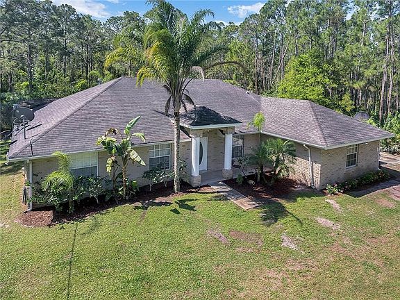 Welcome to Lake Harney Woods a gated community where you can get away from the hustle and bustle of city life yet be close enough to the beaches and Orlando's finest offerings. This home features 4 bed 2bath 2 car garage home with concrete block construction that sits on almost 6 acres+ private acres and has community water access and boat slip to Lake Harney. The almost 6 acre parcel has a beautiful clearing with views of a dreamy tree-line and your own small private fishing pond. The home boasts an open floor plan with vaulted ceilings. has a formal dining room and a den that leads to the 4th bedrooms. The Kitchen has a large eat in kitchen area with large breakfast bar with real wood cabinets and new stainless steel appliances. The Kitchen opens up to the large family room that is perfect for entertaining. The family room has a wood burning fire place, wood flooring and French doors that open up to the under-roof back porch and screened in pool. The pool and spa that have beautiful conservation views. The Master Bathroom has a large garden tub and stand up shower with his and her sinks. This home is located just over the Seminole county line, in Volusia but zoned for "A" RATED SEMINOLE COUNTY SCHOOLS GENEVA ELEMENTARY, CHILES MIDDLE, OVIEDO HIGH!!! Come enjoy country living yet be located within 30 minutes to the East coast beaches & 30 minutes West to the Sanford airport, Lake Mary, Oviedo, Winter Springs, Chuluota, UCF & Seminole State.