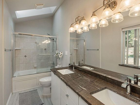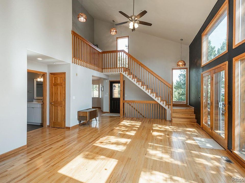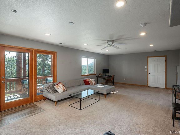 This gorgeous mountain home with newly upgraded kitchen and bathrooms and stunning views is ready for move-in day! Situated on just over an acre of land, and conveniently located just minutes from Aspen Park and Highway 285, this 3-bedroom, 3-bath house was fully remodeled in 2019. The kitchen is a showstopper with a modern aesthetic, featuring an eat-in area, a spacious island, quartz countertops, and a brand new refrigerator. Bringing the outdoors in, the main-floor living area has floor-to-ceiling windows and walks out to a deck that looks out over the mountainous community with abundant wildlife and frequent summer rainbows. A second living area and walk-out deck on the lower level creates ample flexibility for work, play or relaxation. The primary bedroom, with ensuite bathroom and walk-in closet is located on the upper floor and has a unique overlook to the main level that can be left open, or closed for privacy. The additional two bedrooms are situated on the main floor and lower level respectively, and each have an adjacent, remodeled full bathroom. The attached 2-car garage includes a brand new insulated garage door, attic storage, an extra fridge/freezer, and a workbench. There is plenty of additional parking on the south-facing driveway, as well as an electric vehicle charger. For your furry friends, a large fenced area is accessible from the front door. Meticulously maintained, this property features a roof that was replaced in 2018 and still under warranty, an interior sprinkler system, and a well head and pump that were replaced in 2022. Neighborhood access to Flying J Ranch open space park makes outdoor adventures just steps away. $240/year fee for private road maintenance. Curious about the winter road conditions on Blue Sky Trail? This tight-knit neighborhood has an organized and efficient system for snow removal. Early plowing and lots of sunshine means fast melting on this private road.