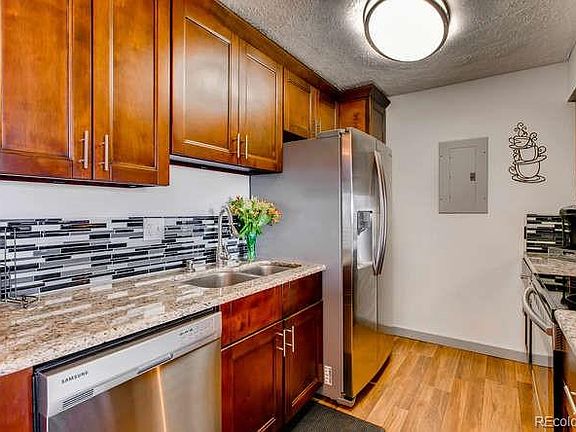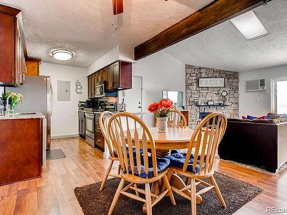 Beautiful updated newly painted condominium with 2 bedrooms 2 baths, detached garage (#108) + 1 parking space (#99). This well kept condo boasts all stainless steel appliances and includes washer and dryer in the unit as well as individual air conditioning units in the living room and master bedroom.This is a penthouse unit with vaulted ceiling and includes skylight with remote. HOA is more than affordable and includes heat, trash, snow removal and basic cable with direct TV. Low taxes, adjacent to park/play area. Close to bike paths/public transportation. Welcome to your new home!