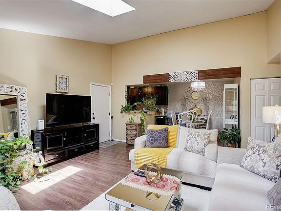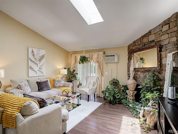 Welcome to this bright and airy 2-bedroom, 2-bathroom condo located in a gated complex. With almost 1000 square feet of comfortable living space, this home features vaulted ceilings and skylights in the living room, flooding the space with natural light. A cozy fireplace adds warmth and charm, making it the perfect place to relax. The patio right off the living room is the perfect place to have your morning coffee. Enjoy the thoughtfully designed layout with a spacious primary bedroom that includes a walk-in closet and en-suite bathroom, in addition to the generously sized secondary bedroom and full bathroom just across the hall. The unit also comes with a detached 1-car garage for added convenience. Community amenities consist of a pool, clubhouse, and playground—offering plenty of options for recreation and relaxation. Situated near the Lowry Sports Complex, the High Line Canal Trail, restaurants, shopping, and everyday conveniences just minutes away. Don't miss this opportunity to own a stylish and affordable home in a prime location!
