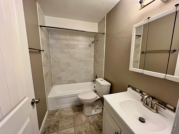 Welcome to your inviting 1 bed, 1 bath gated oasis at Oak Park! The community is set in a park-like community that includes a cabana styled swimming pool and clubhouse. Dotted throughout the community are shade trees, bbq hangouts, a volleyball court, and guest parking. This charming 654 sq ft apartment has been thoughtfully refreshed with brand new paint throughout and features stylish, easy-to-care-for Duralux performance flooring that's also waterproof. The modern kitchen boasts sleek stainless-steel appliances, elegant granite countertops, and a dining area, making meal preparation a pleasure. The living room is truly distinguished by a statement piece cast stone fireplace, adding a unique architectural flair and a cozy ambiance. Enjoy the comfort of a reglazed bathtub and sink in the bathroom. Step outside to your spacious patio, complete with an area perfect for planting your favorite greenery and creating your own outdoor oasis. Priced reasonably for the area, this lovely apartment offers both comfort and convenience. Don't miss out hurry and book your private showing today! Renter pays gas and electric. 1 off street parking spot is included.