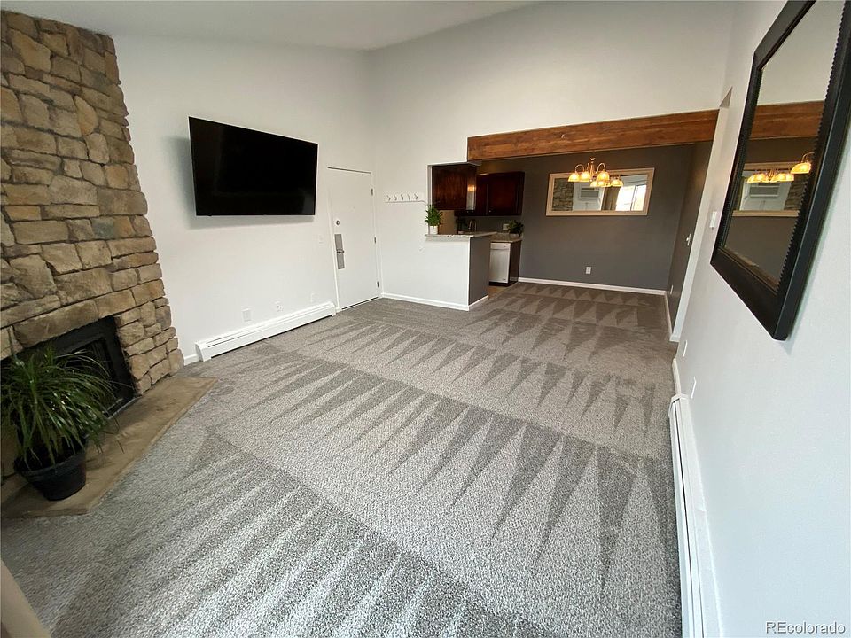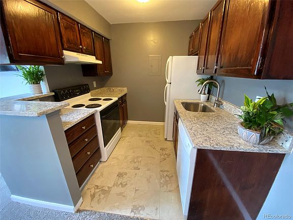 Beautiful refinished and updated top floor unit. New granite counter tops, AC, texture, paint, carpet and television included! Gated private community, vaulted ceilings, west facing views. Close to Lowry, easy commute to Downtown Denver or Cherry Creek. Call this one home!