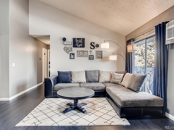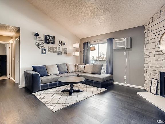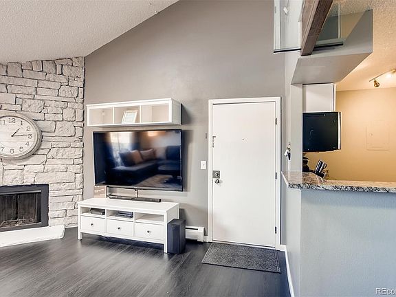 Great Denver condo in a gated community! Top floor remodeled unit with vaulted ceiling! Beautiful plank flooring in the living areas and updated stone fireplace. TV mounts are included. Stainless steel and granite in the kitchen. Two bedrooms and two baths! Master suite! Laundry hookups IN the home. Community offers pool, clubhouse, and play areas. HOA does include heat and water. Don't wait to schedule your tour!