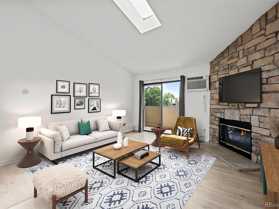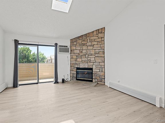Welcome to your new home located in the gated Community of Oak Park. This light and bright condo is located on the upper 3rd level with a private balcony off the living room for relaxation. This one bedroom, one bath condo has been nicely remodeled. The living room has vaulted ceilings with a skylight that lets in abundant natural light. A gas fireplace is inviting for those cold winter nights. The kitchen has been remodeled and opens up into the living room with new cabinets, stainless appliances, quartz counters and a granite sink. The large one bedroom features a walk in closet. The bathroom features an updated vanity. The unit has a stackable washer/dryer which adds to the convenience of this condo. New Aqua Guard Waterproof Wood Based Laminate Flooring has been installed throughout the living spaces. This condo features one reserved parking space and a storage area in the lower level. Enjoy the amenities that include pool, clubhouse, volley ball net, playground and picnic area. You will love this location which is located near public transit, shopping, dining, I-225, Buckley Air Force Base, golf course and the High Line Canal Trail for your peaceful walks. This home is Move In Ready!!!!!