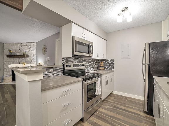Beautifully Remodeled with high end finishes. As soon as you walk into this home you will see it is like non-other in it's range. Laminate flooring all thought the unit except for the bathrooms. Kitchen has quartz counter tops with a double bowl kitchen sink, brand new cabinets that have a lifetime warranty, transferable to you. Matching Frigidaire Stainless Steal appliances with matching kitchen faucet and cabinet handles. Unit has washer dryer hookup and shares it with pantry space that is behind a stain barn door matching the wood beam in the dining room and mantle over the wood fireplace. Freshly painted all throughout with new trim all around. Master bedroom has a walking closet his and hers side and it's own bathroom. Bathrooms have porcelain title in the bathtub wall with special accents in each one and different style and unique designed title on the floor. This unit has it all. Come take a look for yourself.