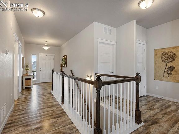 Welcome to this stunning ranch-style home in the sought-after community of Stonebridge, Meridian Ranch. Boasting 4 bedrooms, this home offers an ideal layout with 2 bedrooms upstairs and 2 downstairs, providing ample space and privacy. The large primary bedroom suite is a true retreat, while one of the upstairs bedrooms could easily transition into a home office to suit your needs. Upon entering, you'll be greeted by an abundance of natural light that floods the interior, highlighting the upscale features throughout. The upstairs great room is adorned with a cozy gas fireplace and luxurious vinyl plank flooring, creating a warm and inviting atmosphere. The kitchen is a chef's dream, featuring beautiful white quartz counters, a kitchen island, stunning aqua glazed ceramic subway tile backsplash, and upgraded tall kitchen cabinets. The finished basement offers a bonus office space and a spacious family room, perfect for entertaining or relaxing. Additionally, the whole house humidifier ensures comfort year-round, while the bathrooms are appointed with elegant granite counters. Situated on a corner lot within a peaceful cul-de-sac, the exterior of the home is as impressive as the interior. Professionally landscaped front and backyard spaces provide the perfect backdrop for outdoor enjoyment and relaxation. Conveniently located, this home offers easy access to parks, trails, the Meridian Ranch Recreation Center, and the Stonebridge clubhouse, all within a short distance. Furthermore, schools are easily accessible by bike, adding to the convenience of the location. Don't miss the opportunity to make this exquisite home yours and enjoy the best of Stonebridge living.
