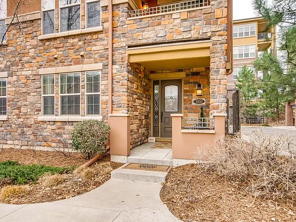 Location is key. Elegant Vallagio end unit townhome in a prime location. Open floor plan with high ceilings and a modern and trendy design. Huge kitchen with custom cabinets, granite counter tops and stainless-steel appliances. Hardwood floors on main level with multisided fireplace in living room and dining room, balcony off kitchen for grilling & enjoying conversations with guests. Large master suite on the upper level, five-piece luxury bath & 1 additional bedroom, bath and laundry room. Small but useful landing at top of stairs for desired use. Another bed room with own bath is located on lower level can be used for the perfect home office. Easy commute to downtown or DTC. Less then a block from the Dry Creek light rail station. A quick walk away to great coffee shops, several restaurants, bars and dry cleaners. everything you need in walking distance. You literally don't have to leave to enjoy your best life. The love of golf is not required but can be well accommodated.