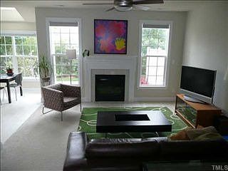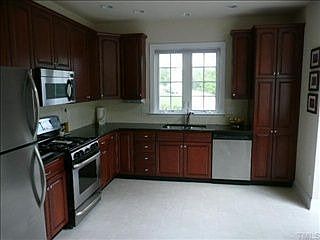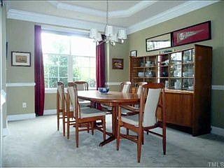 Cheerful 3 br home w/spacious rms & low maintenance, situated on private cul-de-sac end lot.Open flr pln, many upgrades: granite counter tops, cherry cabs, gas cooktop, refrig. & w/d. Fabulous loc w/easy access to shopping, RTP RDU, I-540. Seller will pay $2500 initiation fee to Country Club at closing. This home provides carefree living at its best w/all conveniences to be had.