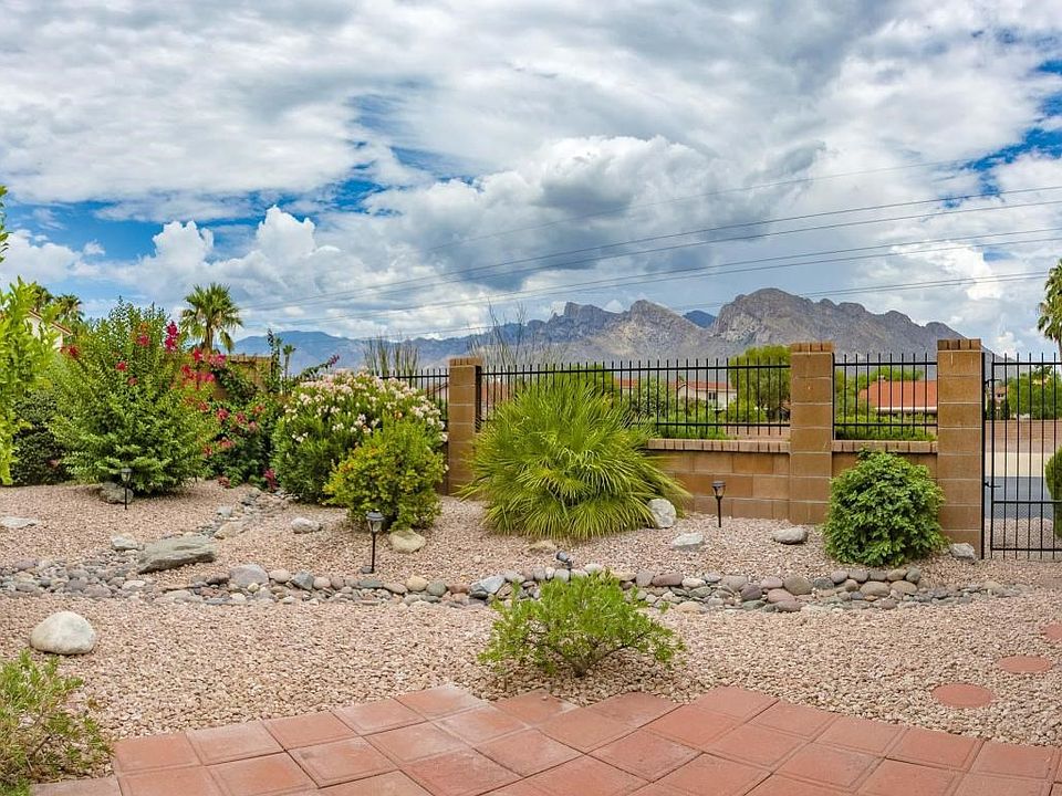 Beautiful Unobstructed Catalina Mountain Views! Impeccably maintained 2 bedroom, 2 bath home with den, 2 car garage and fireplace. Stunning backyard with gorgeous landscaping and mountain views. Open floorplan with Living and Dining Room. Iron Security Doors on front and back of home. Gas Range with Corian countertops. No one behind with open area next to the road for privacy. Tons of storage in Garage. All appliances stay!!