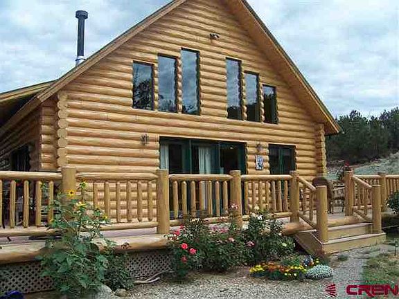 Lovely log home overlooking Mancos. Beautiful light colored logs, open floor plan, gas fireplace, views, garage, garden with producing fruit trees ( apple, pear, peach, cherry and plum ) , this home has it all. Two master suites, one on ground level, one upstairs, offer options for the buyer.