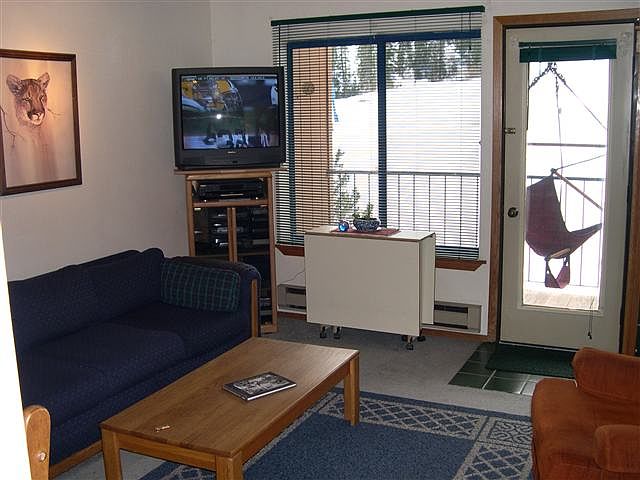 Great views of Donner Ski Hill and Sugar Bowl. Convenient one bedroom plus two baths can be rented as separate studio and hotel-style with separate secured doors. Lovely living room with great views and murphy bed, spacious kitchen with breakfast bar. Wonderful deck to enjoy the mountain views, do some people watching in the afternoon and relax with a glass of wine and bbq after skiing. This is a perfect condo for the busy lifestyle...ready, set, go!